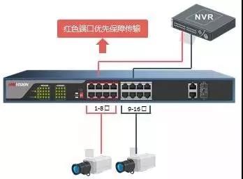 重要區(qū)域視頻(出入口、檔案室等)接入紅色端口,優(yōu)先保障傳輸,視頻不丟幀、不卡頓。