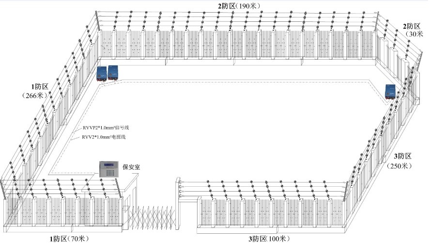 電子圍欄的主動防護性強:當不法分子入侵時,將受到有效的電子擊打,停止其不法行為;